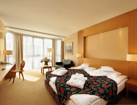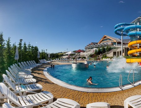 Do tego fantastyczna kuchnia (także wegańska), w której sporo produktów robimy na miejscu od zera, wygodne pokoje w 4-gwiazdkowym standardzie, a po pracowitym dniu – regenerujący wypoczynek na Termach BUKOVINA. Wystarczy, że założysz w pokoju szlafrok i bezpośrednio przechodzisz do termalnego świata relaksu.