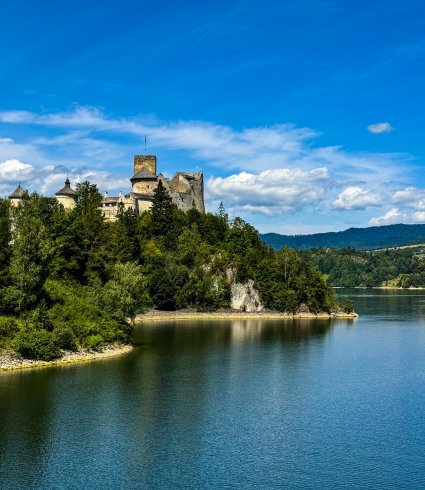 Jeśli marzysz o spokojnej, malowniczej trasie z dala od ruchu samochodowego, Velo Czorsztyn to strzał w dziesiątkę. Ta pętla wokół Jeziora Czorsztyńskiego (ok. 30 km) to jedna z najpiękniejszych tras w Małopolsce – idealna na półdniowy wypad. W zasięgu krótkiego przejazdu z hotelu znajdziesz się na trasie, która biegnie wśród zielonych wzgórz, z widokiem na Zamek w Niedzicy, ruiny zamku w Czorsztynie i szczyty Tatr w tle. Trasa jest przyjazna dla rodzin i początkujących – możesz zabrać dzieci lub po prostu wybrać się na spokojną przejażdżkę we dwoje.