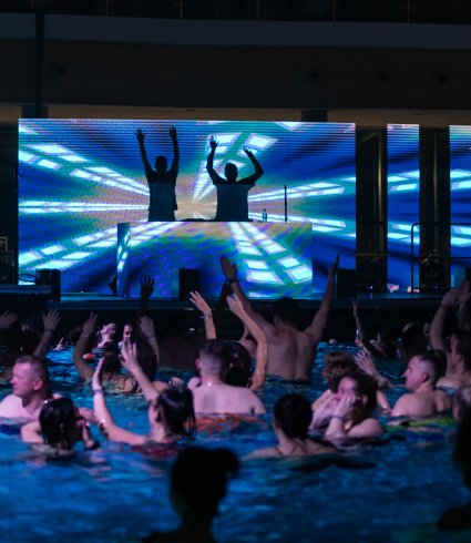 How about a bath in thermal waters ... at night? The Swimming Pool Night is organised regularly. It offers many additional attractions, like barman, magician or molecular cuisine shows, live music, competitions and surprises.